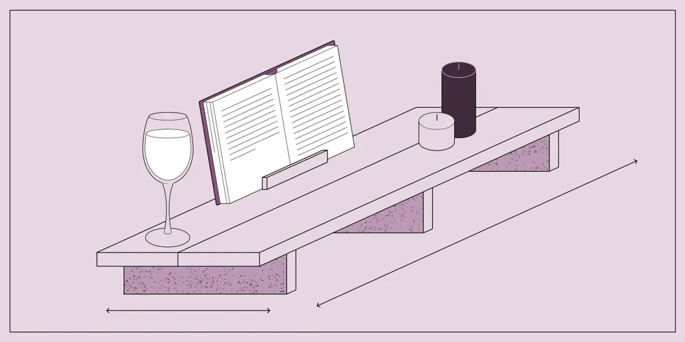 После тяжёлого рабочего дня приятно расслабиться в ванне с пеной или выпить чего-нибудь вкусного под книгу или сериал. А можно всё это совместить: на полку-столик для ванны поместится и книга, и планшет, и бокал, и свеча с любимым ароматом. Ещё и эстетичные фото для соцсетей сделаете.