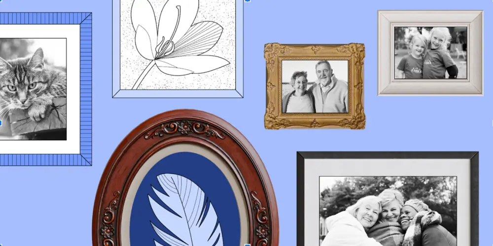 Ещё можно выбрать акцентные фоторамки, расставить их в разных частях комнаты и разбавить ими спокойный интерьер. Если вам нравятся рамки как в картинных галереях, можно поискать винтажные варианты в антикварных магазинах и на блошиных рынках.