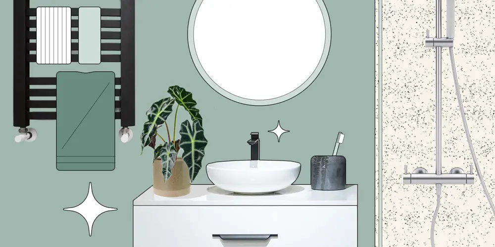 Важно эффективно использовать свободные стены. В этом помогут подвесные полки, мыльницы, стаканы для зубных щёток, держатели для полотенец и фена. Главное — максимально задействовать стены и углы. Свободный пол создаст ощущение простора.